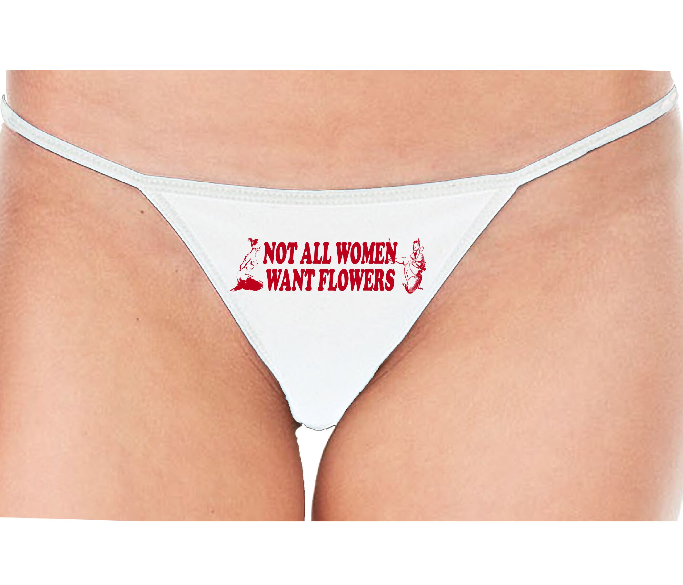 Not All Women Want Flowers - White String Thong