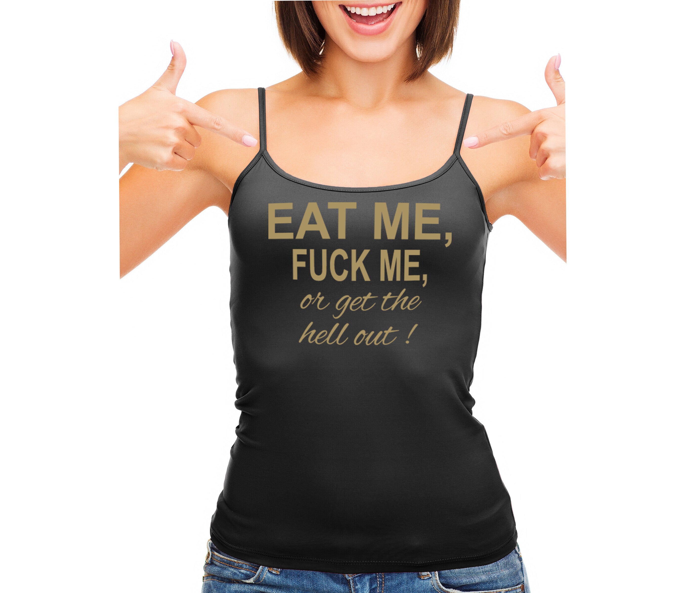 Eat Me Fuck Me Or Get The Hell Out - Black Camisole Tank Top