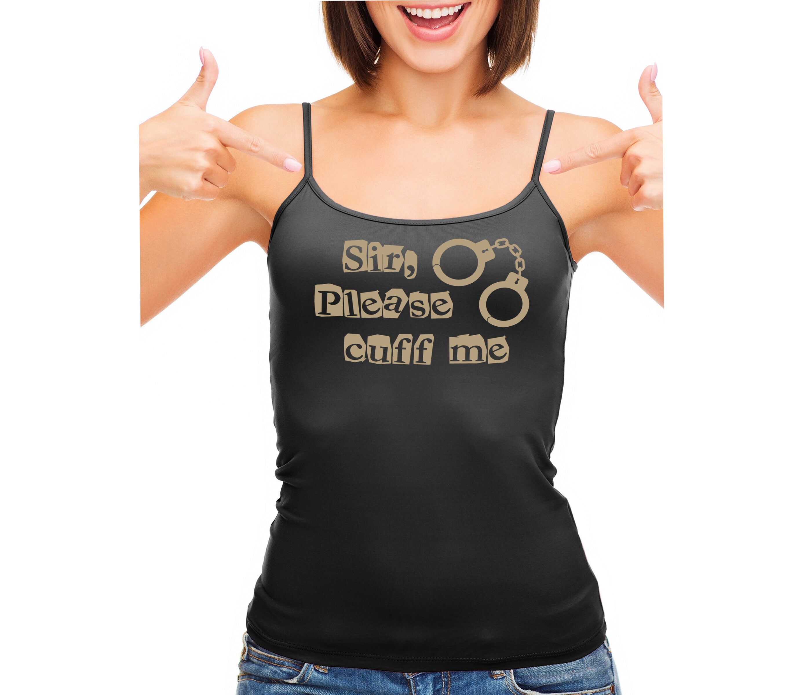 Sir Please Cuff Me - Black Camisole Tank Top