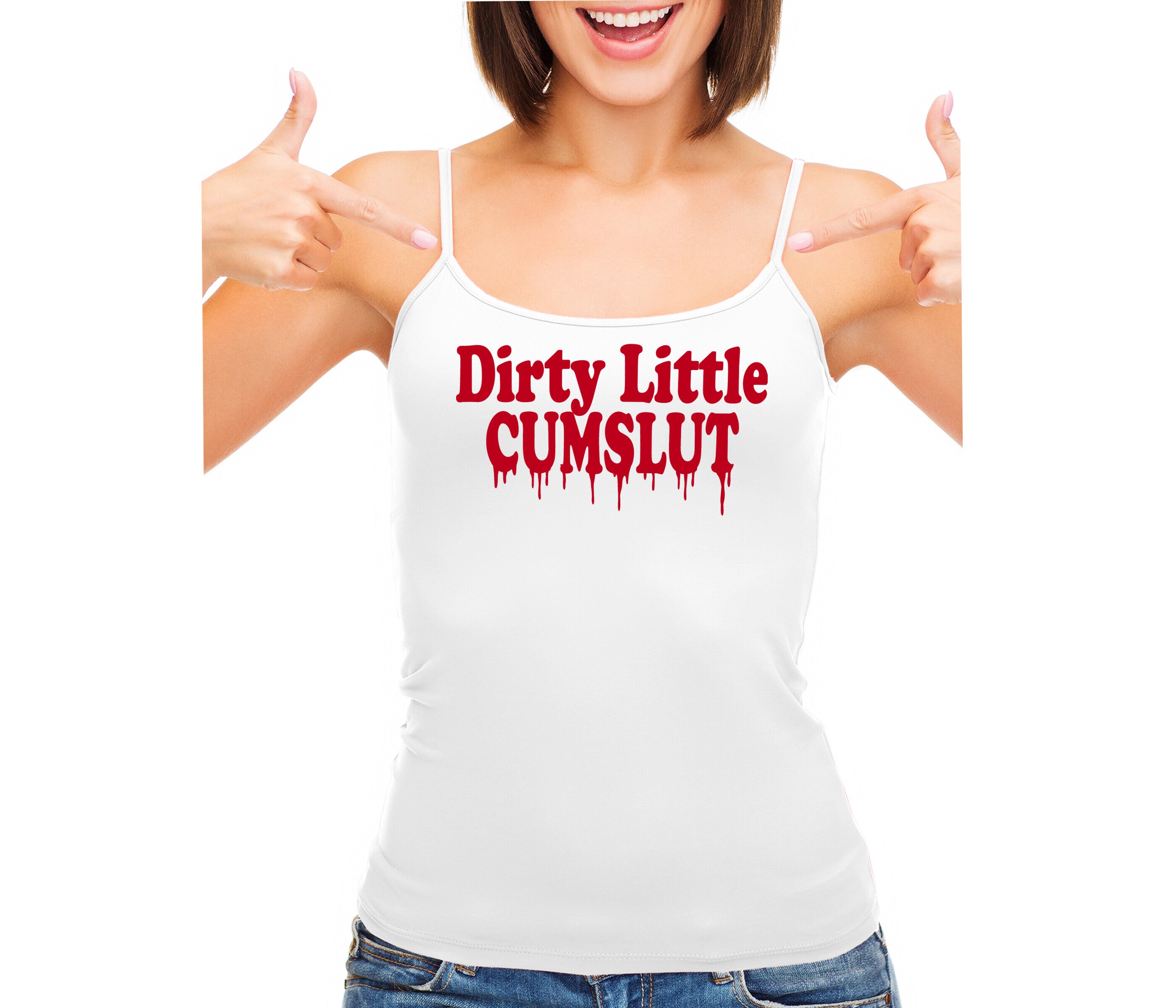 Dirty Little Cumslut - White Camisole Tank Top
