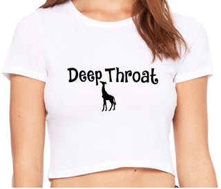Deepthroat - Funny Giraffe Logo - White Crop Top