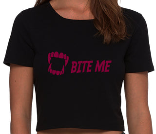 Bite Me - Vampire Teeth - Pink Bikini Black Lace